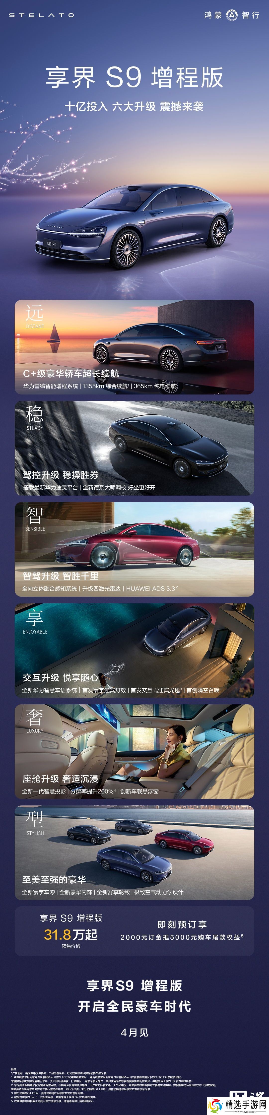 本站 4 月 15 日消息,华为终端官方今日发文宣布,“全景智慧旗舰轿车”鸿蒙智行享界 S9增程版将于明日(4 月 16 日)正式上市。新车号称“十亿投入,六大升级”,预售价 31.8 万元起。