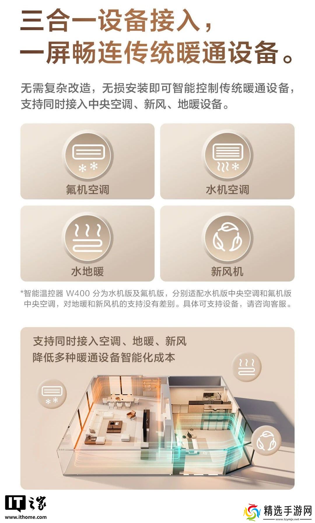 京东绿米 Aqara 智能温控器 W400 三合一设备接入 | 双协议支持 1299 元直达链接据介绍,绿米 Aqara 智能温控器 W400无需复杂改造,支持无损安装,可智能控制传统暖通设备,支持同时接入中央空调、新风、地暖设备。