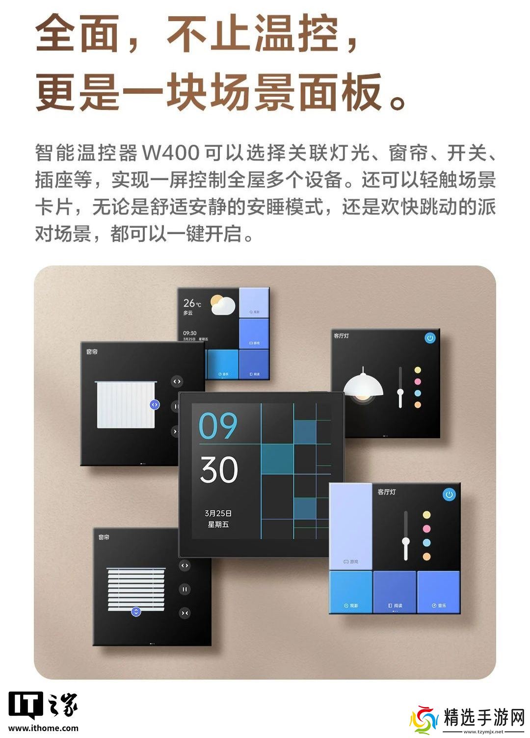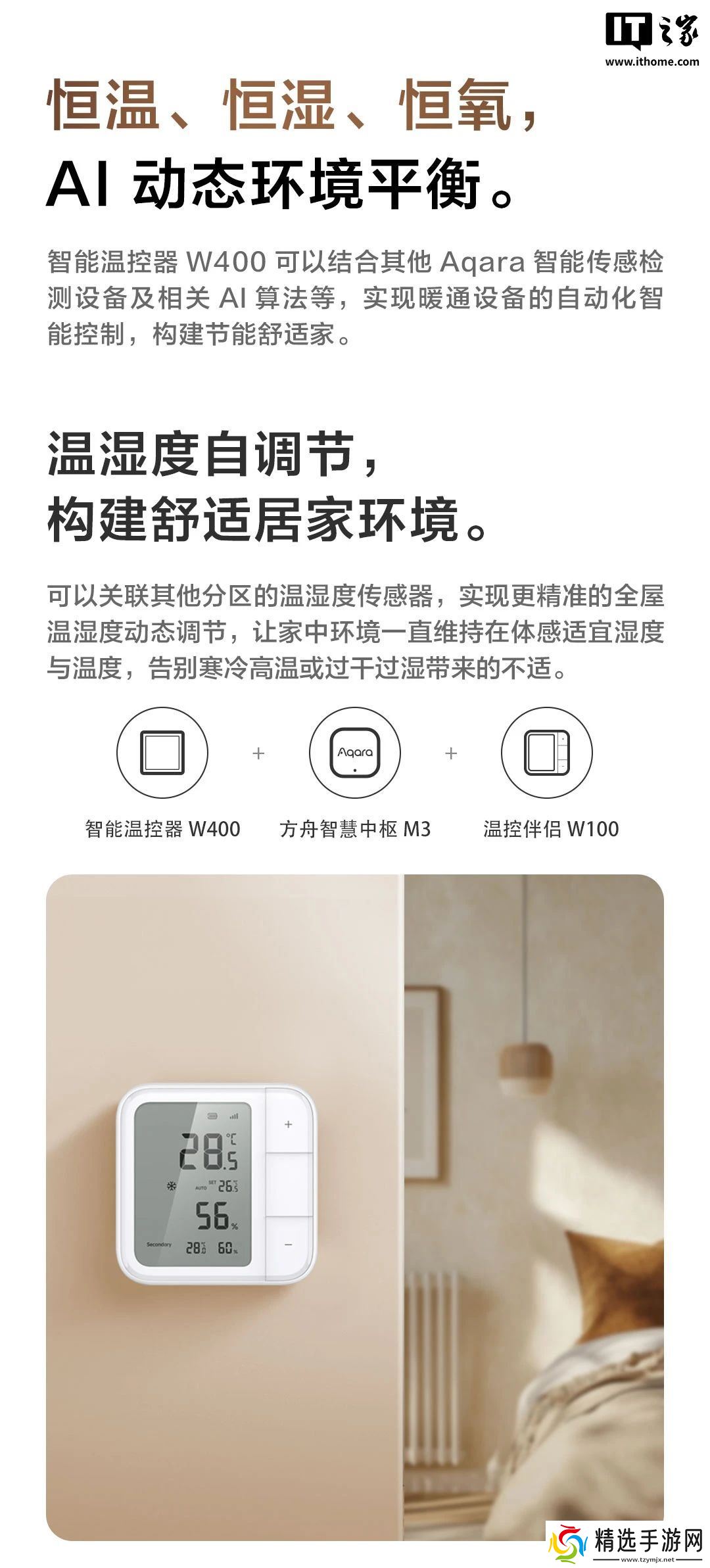 智能温控器 W400 可结合其他 Aqara 智能传感检测设备及相关 AI 算法等,实现暖通设备的自动化智能控制。新品可关联其他分区的温湿度传感器,实现更精准的全屋温湿度动态调节。