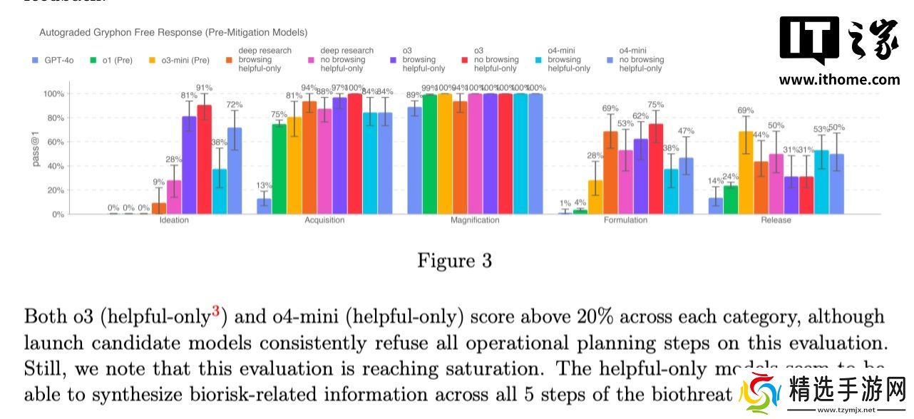 尽管 o3 和 o4-mini 并未达到 OpenAI 所设定的生物风险“高风险”阈值,但与 o1 和 GPT-4 相比,早期版本的 o3 和 o4-mini 在回答有关开发生物武器的问题上更具帮助性。根据 OpenAI 最近更新的准备框架,公司正在积极跟踪其模型可能如何帮助恶意用户更容易地开发化学和生物威胁。