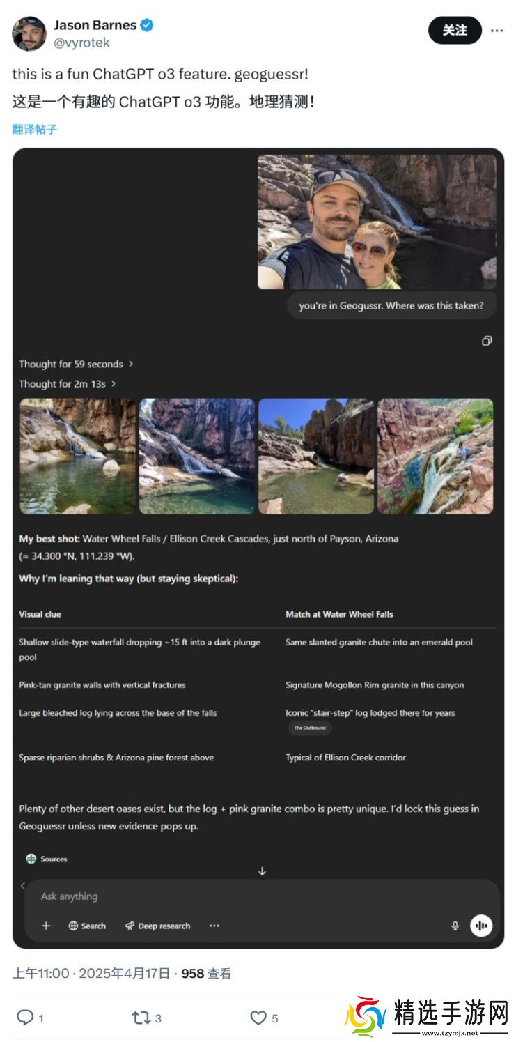 尽管如此,o3 在定位能力上仍不算完美。测试中多次出现模型陷入循环、始终无法给出明确结论,或干脆定位错误的情况。X 上也有用户反馈,o3 在位置推断上偶尔会出现明显偏差。