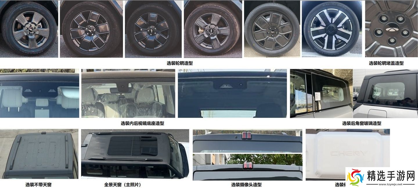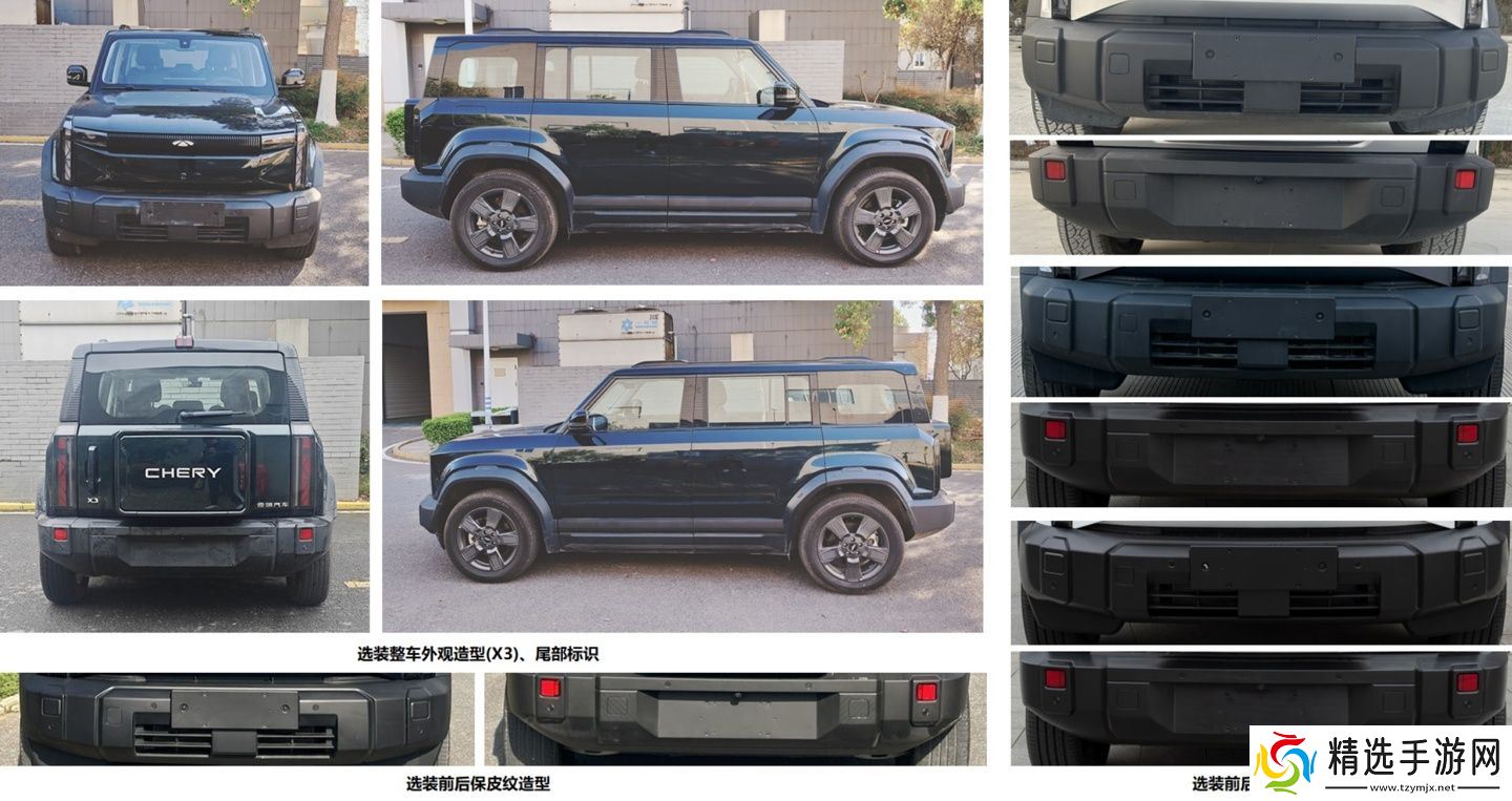 从图中可以看到,该车采用黑化外观、方盒子造型,尾部有大大的 CHERY 英文标志。