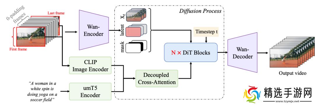 基于现有的 Wan2.1 文生视频基础模型架构,通义万相首尾帧生视频模型进一步引入了额外的条件控制机制,通过该机制可实现流畅且精准的首尾帧变换。