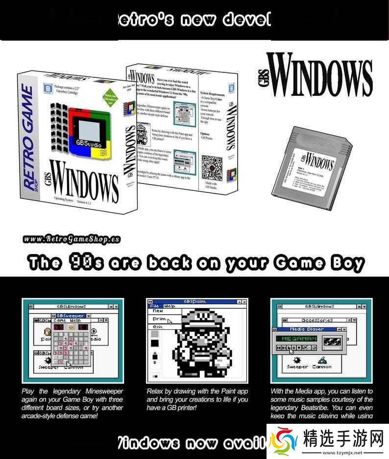 Rubenretro的GBS Windows卡带,为这款老旧的掌机注入了新的生命。通过这款卡带,玩家可以在GBC的1.7英寸小屏幕上,体验到Windows 3.1系统的经典界面,甚至还能运行如扫雷、Cannon(一款类似《**指挥官》风格的游戏)等经典游戏。