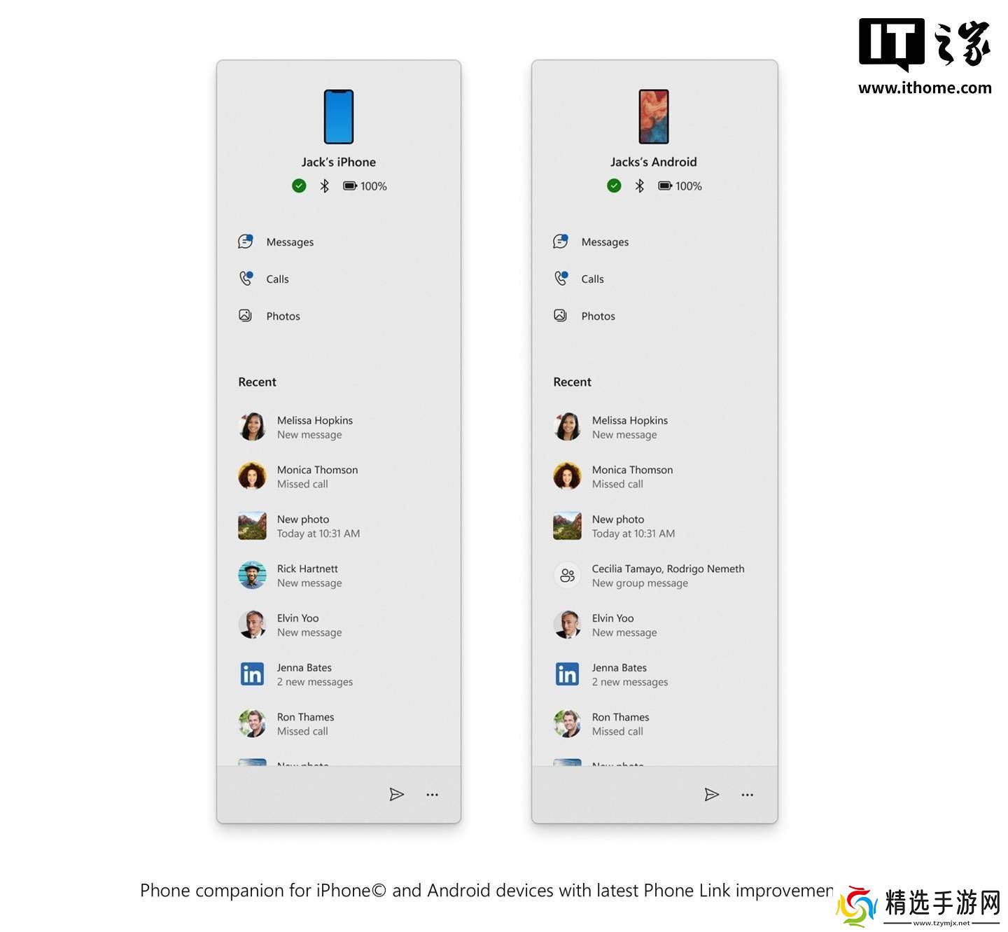在移动设备连接方面,微软也进行了多项优化。用户现在可以直接在开始菜单中查看移动设备应用的通知,通知按应用分组,便于快速浏览。用户还可以通过单击开始菜单中的设备图标或从底部菜单访问相关选项,实现安卓设备屏幕的镜像显示。对于iPhone用户而言,现在可以通过开始菜单访问iPhone照片,同时Windows平台的iCloud应用也支持查看最近同步的照片,并快速访问用户账户中的所有iCloud照片。