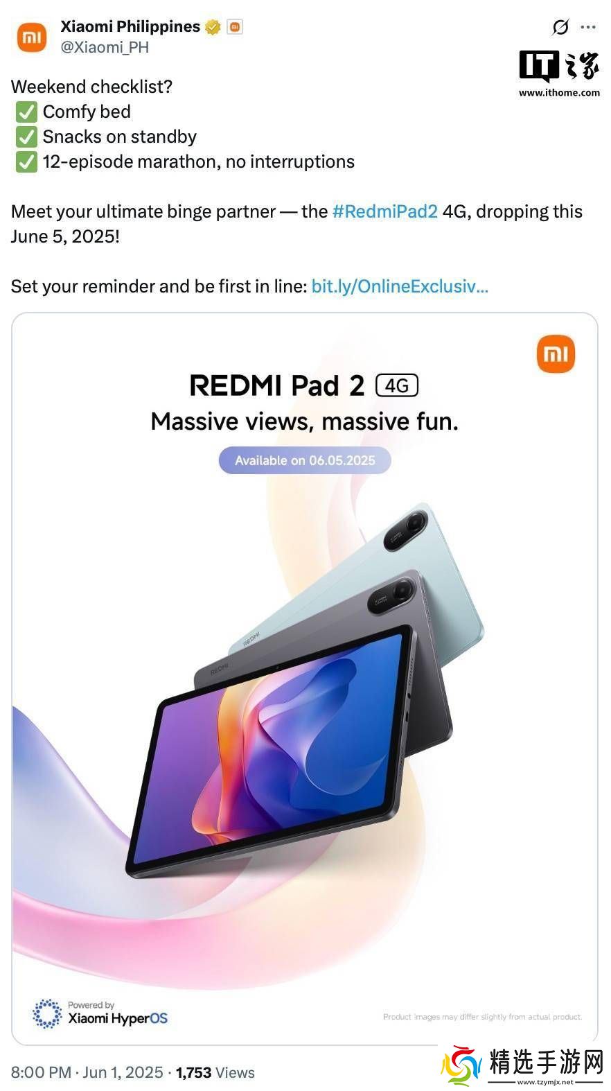 小米公司在海外正式揭晓了其最新平板电脑产品——REDMI Pad 2,这款设备预定于6月5日在多个海外市场同步上市。作为REDMI Pad系列在2022年海外版本的升级版,REDMI Pad 2定位中低端市场,为消费者提供了三种时尚配色选择。