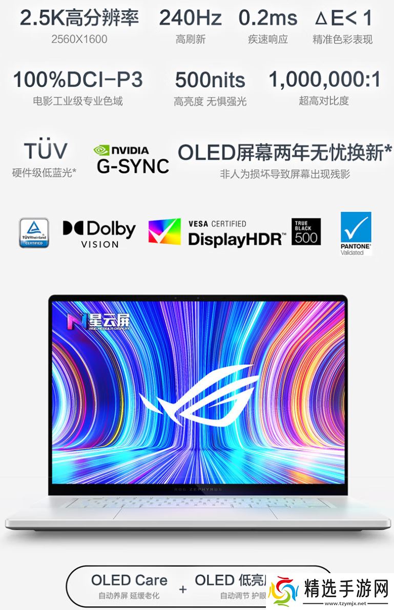 该机配备一块16英寸2560×1600分辨率240Hz OLED面板,响应速度0.2ms,支持500尼特亮度、色准 ΔE<1,对比度1 百万:1,覆盖 100% DCI-P3色域。