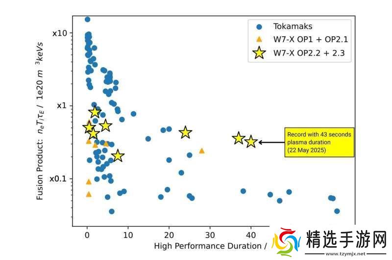 在 5 月 22 日结束的 OP 2.3 实验活动中,W7-X 国际团队在长时间等离子体放电中取得了三重乘积的世界纪录。当天,他们将这一关键聚变参数维持在巅峰值长达 43 秒,超越了托卡马克装置在类似时间段内的最佳表现。