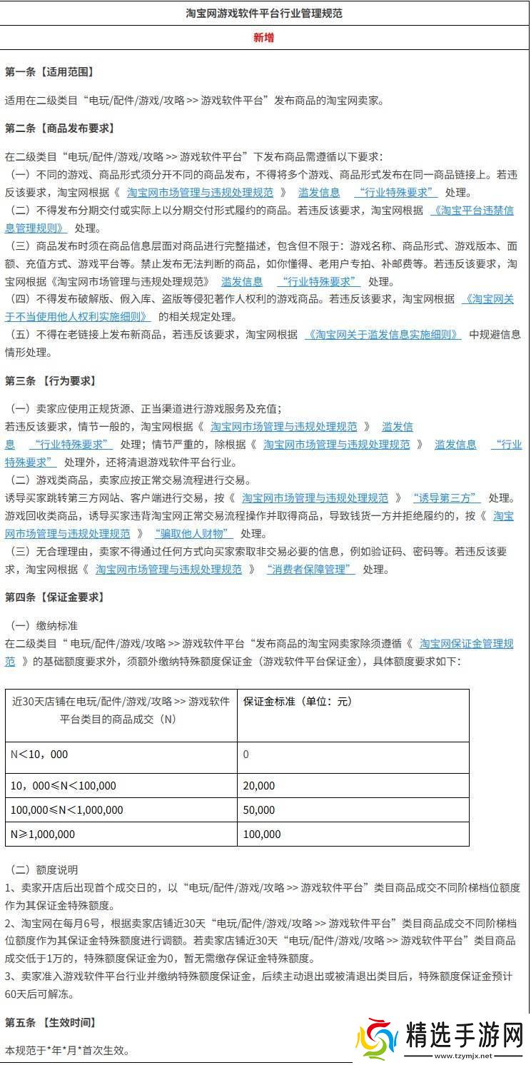 淘宝网近期针对游戏软件平台行业的管理规范进行了重要更新,并于周三正式发布了相关公告。此次规范调整旨在进一步优化买家的购物体验,同时推动游戏软件平台行业的有序发展。