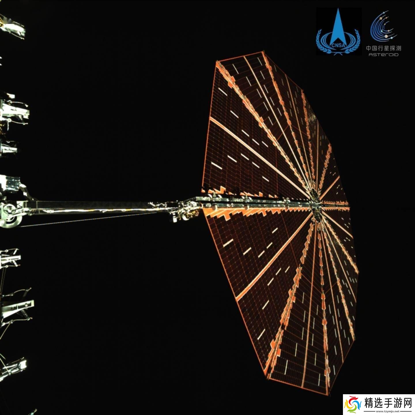 国家航天局近期揭晓了天问二号探测器在轨飞行的最新图像,图像中天问二号的圆形柔性太阳翼完全展开,形态宛如中国传统团扇,令人眼前一亮。