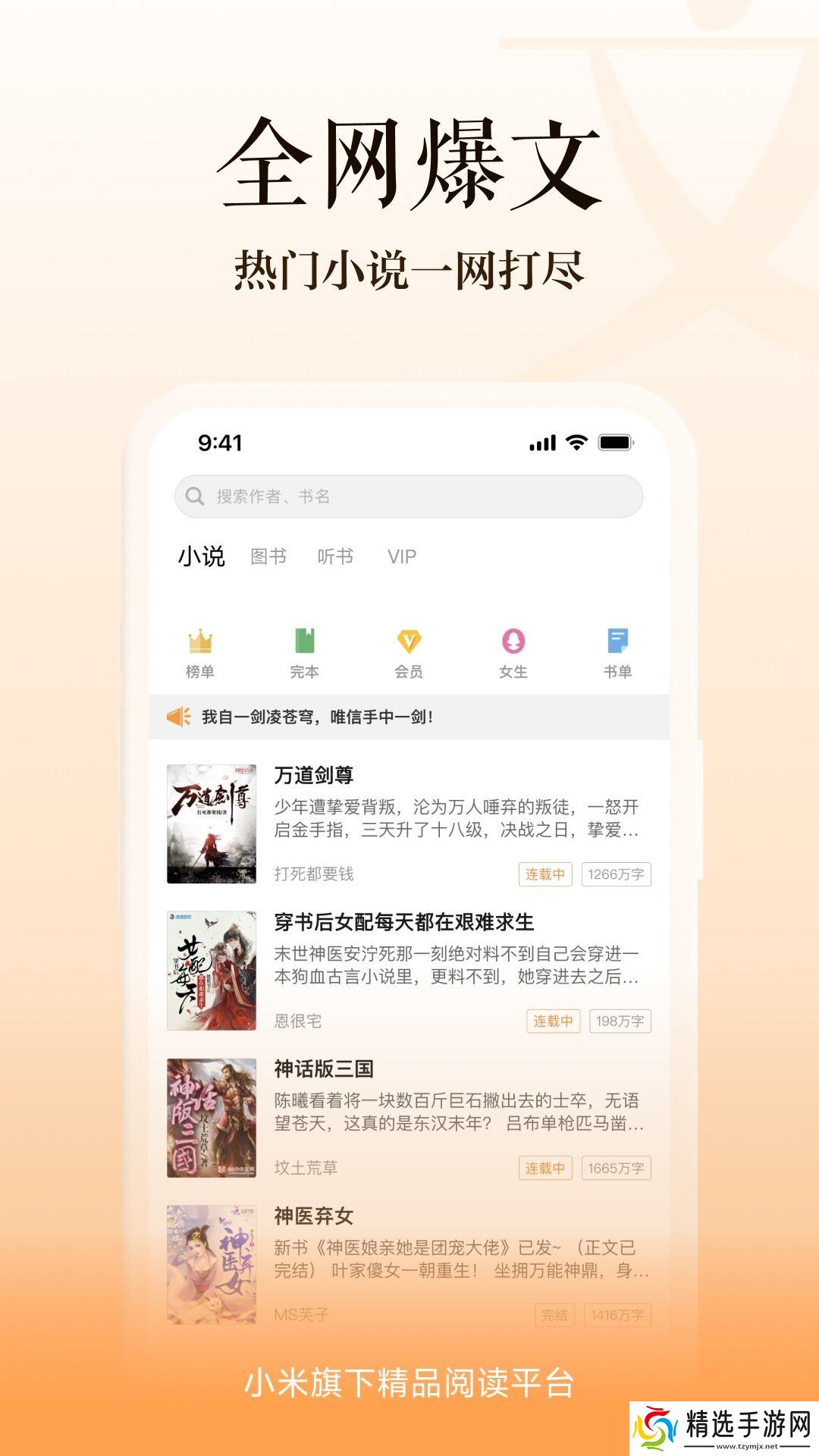 4.卡片式显示:采用卡片式显示方式显示小说信息,界面美观整洁,方便用户快速选择自己感兴趣的小说。