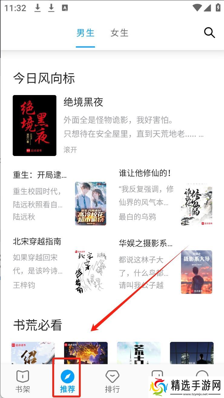 笔趣阁免费电子书官方正版使用攻略-如何收藏1、点击“推荐”进入书籍推荐页面。