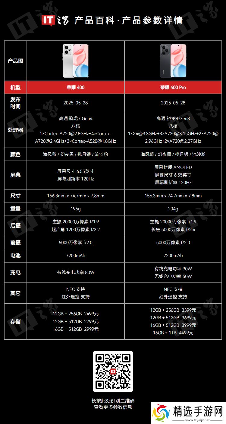 本站 6 月 7 日消息,荣耀 400 / Pro 手机昨日开启首销,标准版搭载骁龙 7 Gen4 处理器,Pro 版搭载骁龙 8 Gen3 处理器,售价 2499 元起。本站发现,这两款新机的维修备件价格现已在官网公布。