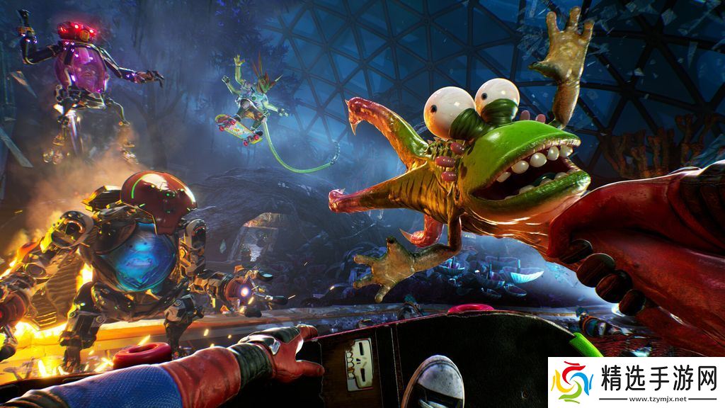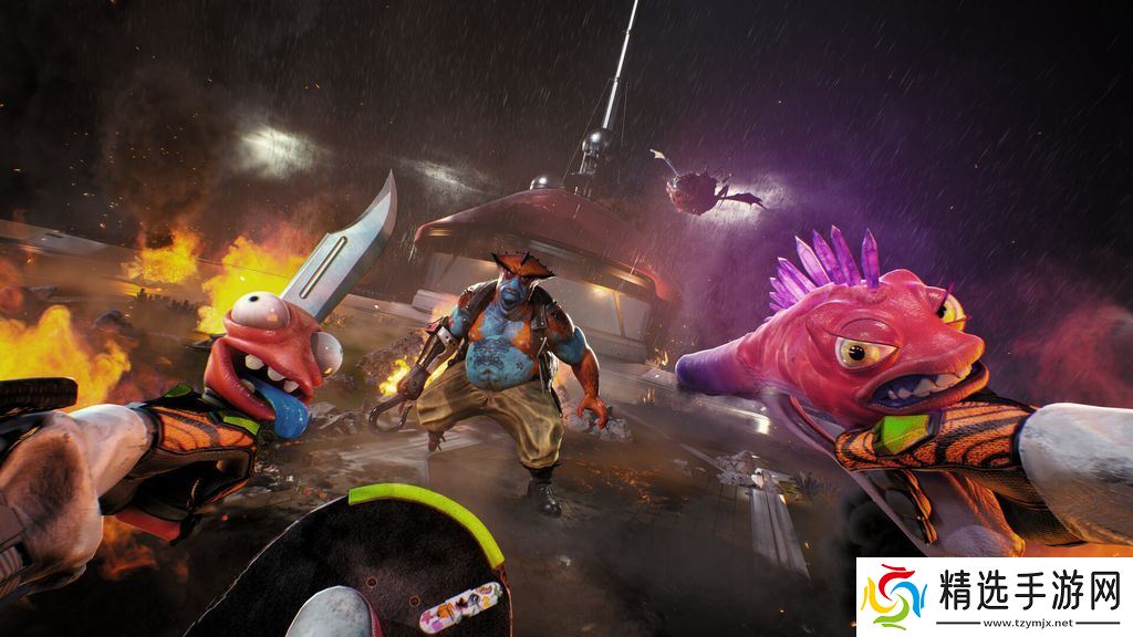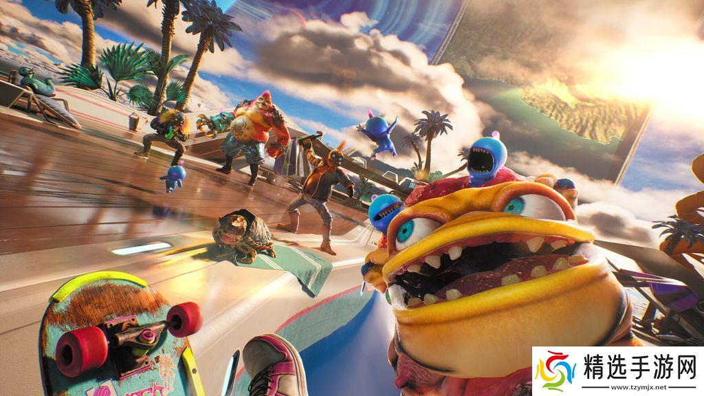 玩家可以踢翻外星**(kickflip alien cops),用全新的滑板(SKATEBOARD)碾压障碍,冲向自由。此外,游戏中还有一群古怪而颠覆性的生命体角色,由全明星喜剧阵容(ALL-STAR COMEDY CAST)配音,为冒险增添幽默与深度。