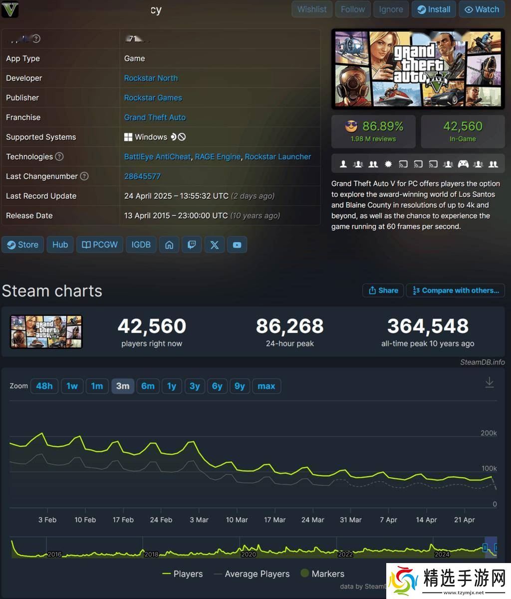 值得注意的是,《GTA 5》近期在游戏订阅服务上也发生了变化,退出了PlayStation Plus订阅库,转而加入了Xbox Game Pass。这一变动为PC玩家提供了除Steam之外的另一个游戏获取渠道,但并未对Steam平台上原版与增强版的玩家数量对比产生直接影响。