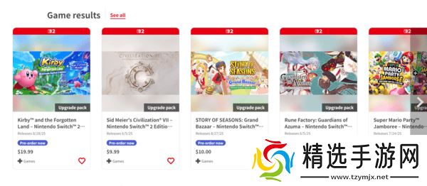 据悉,各款游戏的Switch 2升级包定价各异,部分价格甚至高达20美元。首批公布的升级包及其价格如下: