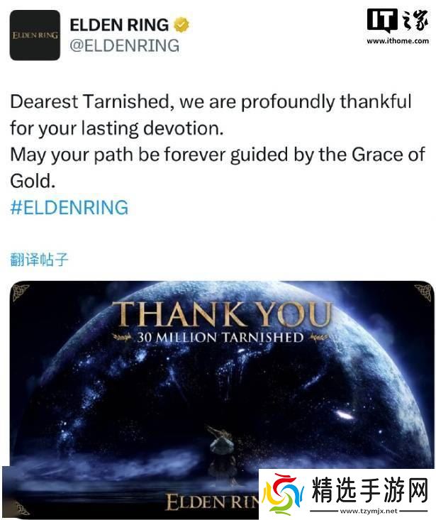 近日,《艾尔登法环》官方传来喜讯,宣布该游戏全球销量已成功跨越3000万份大关,并向广大玩家表达了诚挚的谢意。