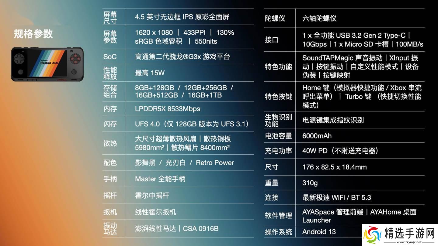 在硬件配置上,AYANEO Pocket ACE配备了一块4.5英寸的无边框高清LCD全面屏,分辨率高达1620*1080,且采用了3:2的黄金比例,能够完美适配多种经典掌机平台的画面,为玩家带来原汁原味的复古游戏体验。