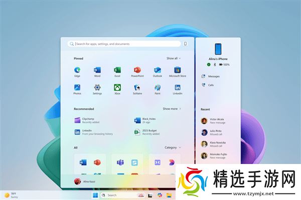 除了上述改进,新版开始菜单还新增了一个管理手机连接的功能按钮。点击该按钮后,用户可以展开或收起与开始菜单并排显示的手机互联界面,实现更便捷的设备互联。
