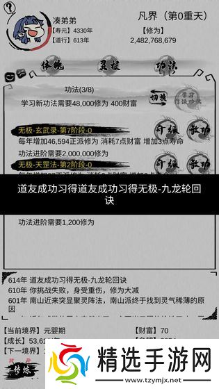 历练塔每天可以挑战一次,游戏中你还可以选择修法术或者是修体术