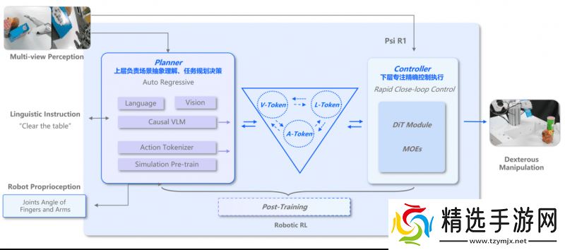 灵初智能近期推出的分层端到端强化学习算法模型Psi-R1,在机器人领域取得了突破性进展。该模型实现了机器人在开放环境下的长程灵巧操作能力,并成功完成了超过30分钟的持续CoAT(Chain of Action Thought)任务。这一成就不仅验证了Psi-R1的三重复合交互能力——人-机交互、机-机交互以及机-环境交互,还彰显了其背后的VLA算法的卓越推理能力和强化学习(RL)的超凡思考与操作能力。