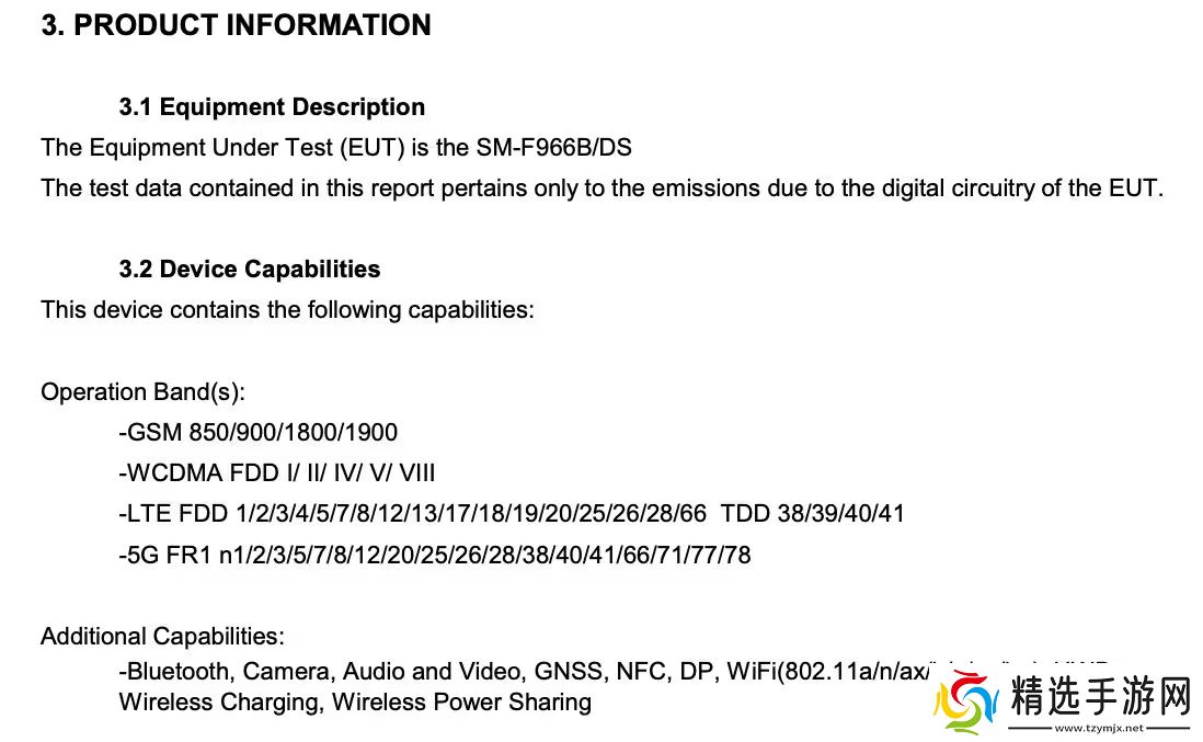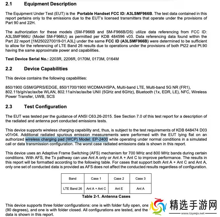 同时,FCC 认证文件还显示该机支持 UWB(超宽带)通信和无线反向充电,同时支持以下网络频段:
