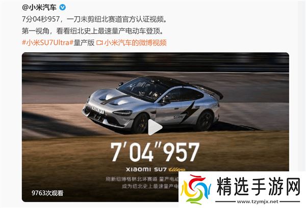 小米公司近日迎来了一项令人瞩目的成就,其首席执行官雷军宣布,小米SU7 Ultra量产版在德国纽伯格林北环赛道(纽北)上创造了新的量产电动车圈速纪录。这辆高性能电动车以惊人的7分04秒957的成绩,成功登顶纽北史上最速量产电动车的宝座。