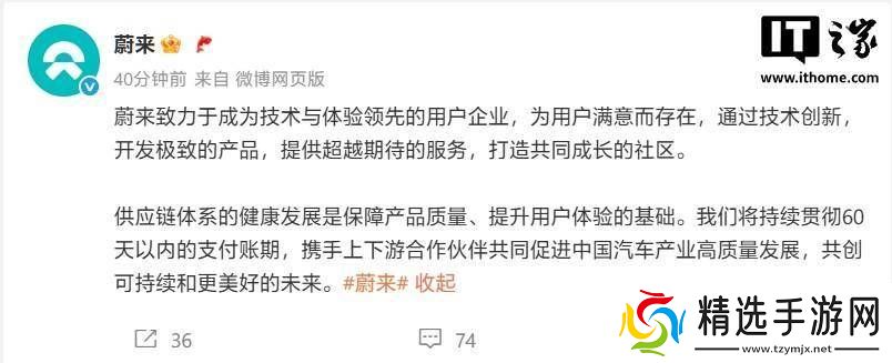 近日,蔚来汽车在其官方微博上宣布了一项重要决策,承诺将坚持在60天内完成供应商款项的支付,旨在携手产业链上下游的合作伙伴,共同推动中国汽车产业迈向高质量发展的新阶段。