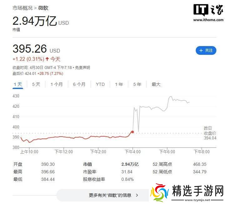 在资本市场方面,微软的股价目前为395.26美元,市值已经达到了2.94万亿美元,这一数字不仅反映了微软在市场上的强劲表现,也体现了投资者对公司未来发展的信心。