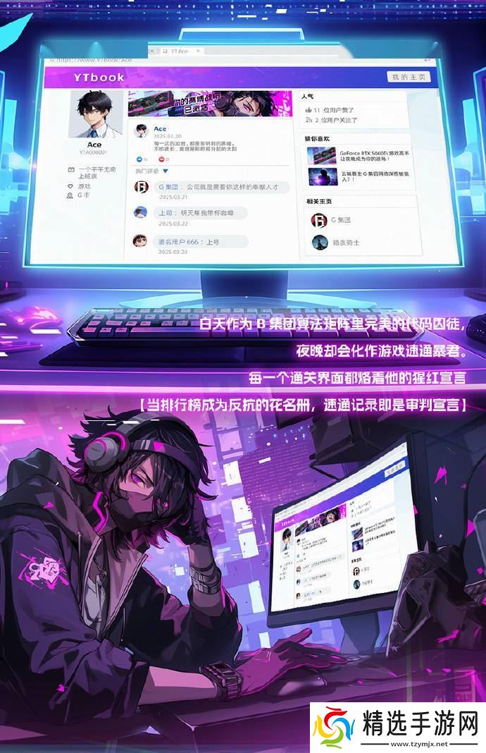 据盈通官方介绍,游戏高手ACE系列显卡采用了独特的“赛博朋克”设计风格,并创造了一个充满神秘色彩的代表角色——“ACE”。该角色背景故事引人入胜:在遥远的207号平行宇宙中,一个名为G的集团通过云架构的神经突触,在赛博空间中建立起了一座不可一世的黑色高塔,从而垄断了整个虚拟世界,将人类变成了可被编程的电子绵羊。然而,在这样一个看似绝望的环境中,ACE却在白天作为B集团算法矩阵中的完美代码囚徒,夜晚则化身为游戏速通暴君,以惊人的速度通关各类游戏,并在每一个通关界面上留下他的猩红宣言:“当排名榜成为反抗的花名册,速通记录即是审判宣言。”