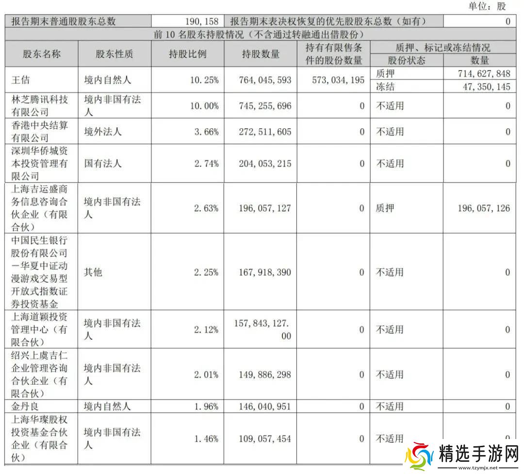在股权结构方面,截至2024年12月31日,公司实际控制人王佶直接持股10.25%,股权处于质押和被冻结状态。腾讯持股比例为10%,成为公司的重要股东之一。香港中央结算有限公司的持股比例在2024年第四季度有所下降,从3.66%降至1.76%,减少了1.9个百分点。