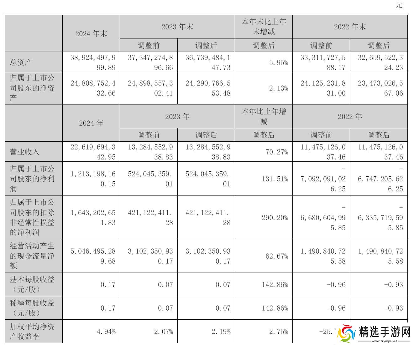 浙江世纪华通集团股份有限公司(股票代码:002602,简称:ST华通)近期公布了其截至2024年12月31日的财务报告。数据显示,该公司2024年的营业收入显著增长,达到了226.2亿元,与上一年的132.85亿元相比,增幅高达70.27%。