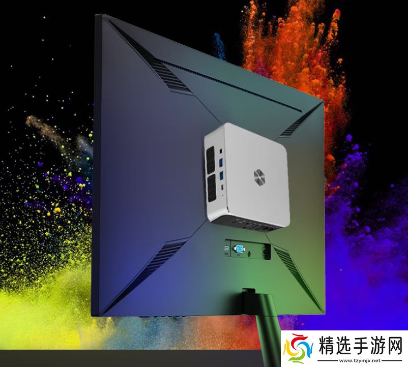 通过机身背面的 VESA 接口,imini Pro830 暴风雪版主机可以悬挂在显示器背部,在悬挂后开关按键位于更方便触碰到的顶部,侧置接口与后置接口方便用户连接设备。