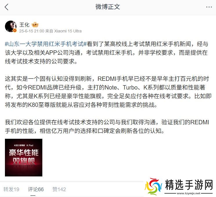 对此,小米集团公关部总经理王化刚刚发文进行了回应。他表示:经过沟通,该校考试禁用红米手机,并非学校要求,而是提供在线考试技术支持的公司要求。本站附原文如下: