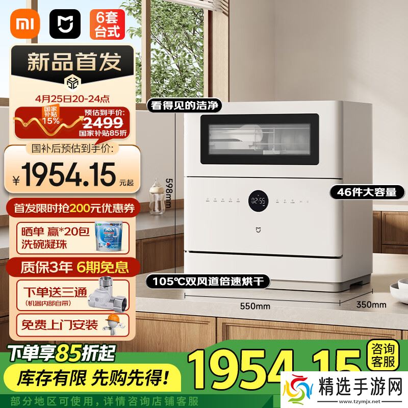 本站 4 月 25 日消息,小米米家台式洗碗机 6 套 S10 今晚在京东等平台开售,到手价2299 元,国补价 1954.15 元起。