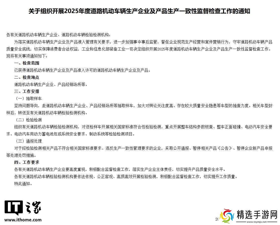 近日,工信部正式宣告将启动2025年度道路机动车辆生产企业及产品的一致性监督检查行动,旨在加强行业监管,确保道路机动车辆的安全与质量。