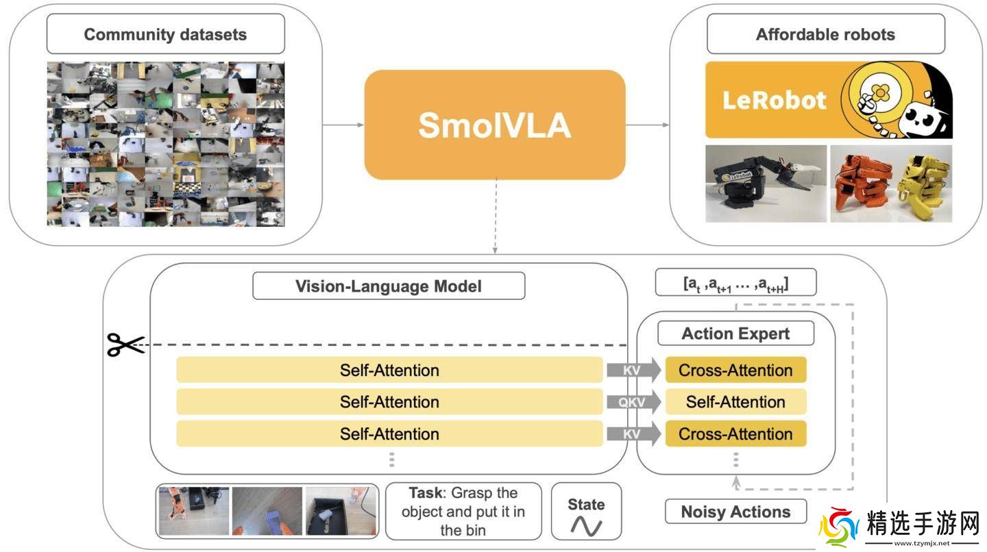 为了打破这一现状,Hugging Face推出了SmolVLA,一个轻量级且开源的模型。它使用公开数据集进行训练,旨在推动通用机器人智能体的研究发展,并降低爱好者的入门成本。这一举措有望吸引更多开发者参与到机器人智能的研究与应用中来。