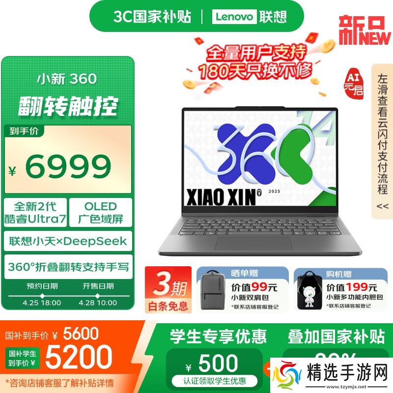 本站 4 月 25 日消息,联想小新首款翻转本“小新 14 360 AI 元启版”今日在京东平台上架并开启预约,首发 6999 元,国补到手价 5600 元,国补学生到手价 5200 元,4 月 28 日 10:00 开售。