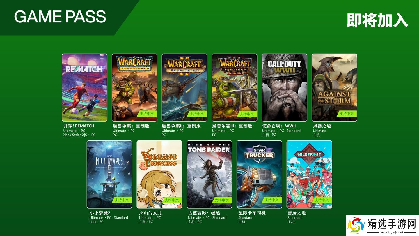 《开球!REMATCH》、《魔兽争霸:重制版》、《魔兽争霸 II:重制版》、《魔兽争霸 III:重制版》、《使命召唤:WWII》、《小小梦魇 2》、《火山的女儿》、《古墓丽影:崛起》将加入 Game Pass Ultimate・PC!
