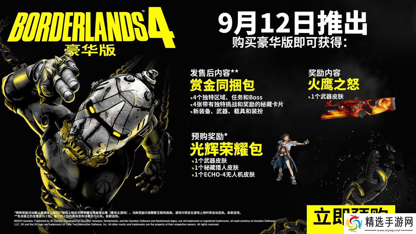 本站 6 月 17 日消息,《无主之地 4》定于 9 月 12 日发售,首发登陆 PC(Steam / Epic)、PS5、Xbox Series X|S 平台。根据官方 FAQ,任天堂 Switch 2 版游戏将在今年晚些时候发售。