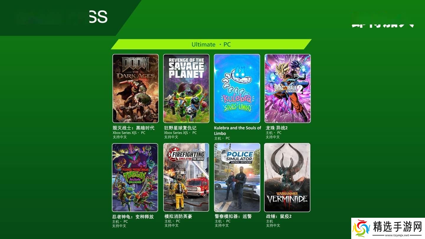 在Game Pass Ultimate的PC版本中,玩家们可以期待《毁灭战士:黑暗时代》的震撼来袭,这款游戏以其快节奏和极致的射击体验而闻名。同时,《狂野星球复仇记》也将加入,为喜爱科幻冒险的玩家提供新的探索舞台。《Kulebra and the Souls of Limbo》以其独特的艺术风格和深刻的剧情吸引了众多关注。备受期待的《龙珠异战 2》和《忍者神龟:变种释放》也将登陆该平台,为粉丝们带来全新的战斗乐趣。另外,《模拟消防英豪》和《**模拟器:巡警》则提供了截然不同的职业体验,让玩家能够身临其境地感受消防员和**的日常。