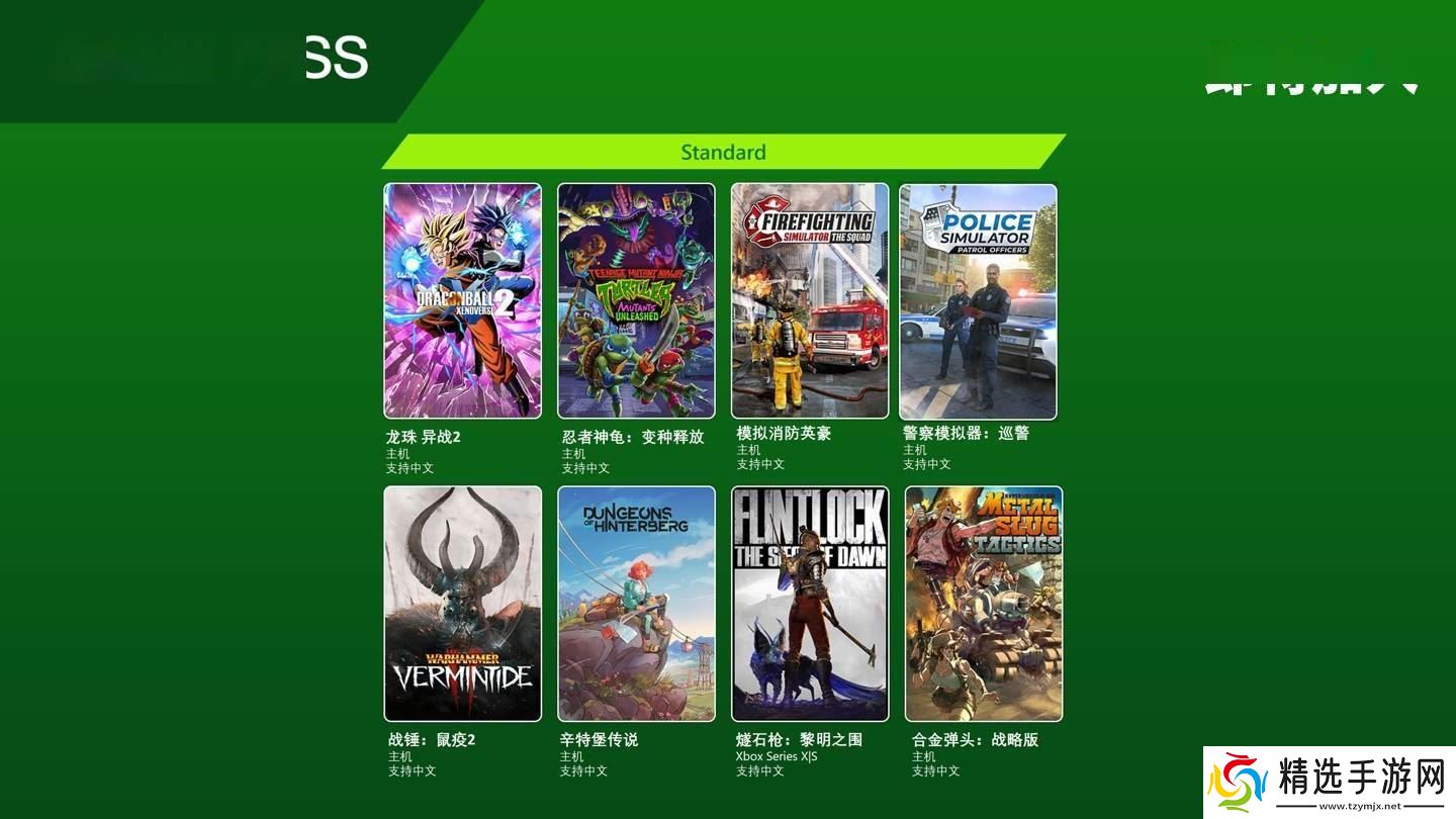 对于Game Pass Standard服务的订阅者来说,同样有好消息传来。《龙珠异战 2》和《忍者神龟:变种释放》等作品也将登陆该版本,让更多玩家能够享受到这些精彩的游戏。《模拟消防英豪》和《**模拟器:巡警》也将继续扩大Game Pass Standard的游戏库。同时,《战锤:鼠疫 2》的加入将进一步丰富该版本的游戏选择。《辛特堡传说》和《燧石枪:黎明之围》这两款风格迥异的游戏也将带给玩家们全新的游戏体验。而《合金弹头:战略版》的加入,则让怀旧玩家们有机会重温经典。
