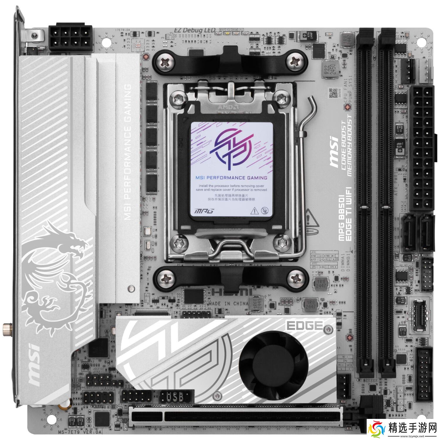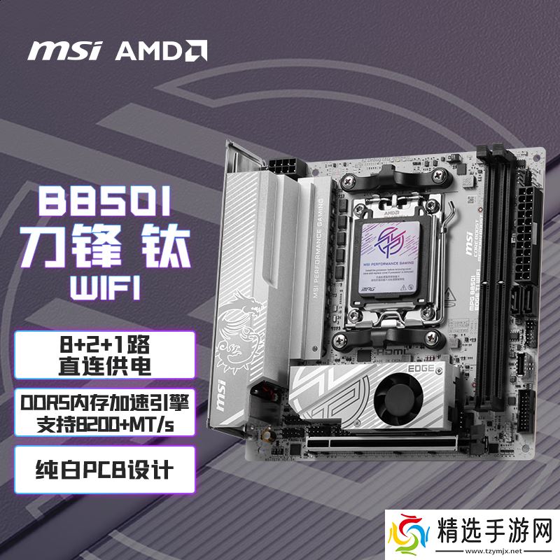 京东微星 MPG B850I EDGE TI WIFI 主板 1799 元直达链接MPG B850I EDGE TI WIFI 主板整体为银灰白配色,但内存槽等板载组件仍为黑色。其采用 10 层 2oz 铜 PCB,搭载 8+2+1 项供电(核心 90A SPS DrMOS),配备单组 EPS 8Pin CPU 供电接口。