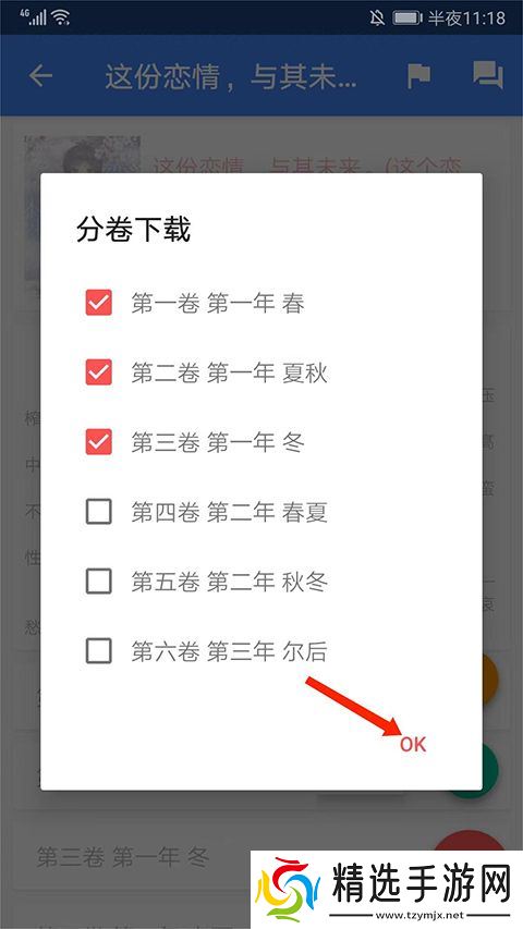 5、进入分卷下载界面,勾选需要下载的内容后,选择右下角【OK】选项就可以下载小说了。