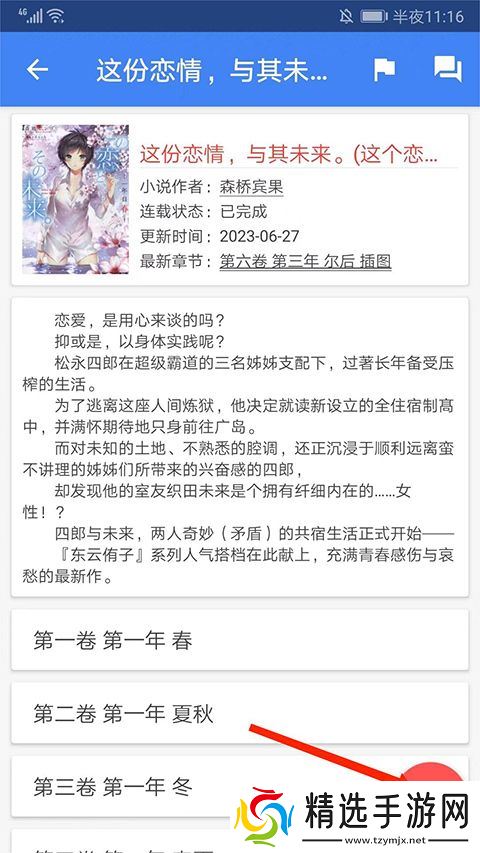 3、进入小说简介界面,在下方选择章节目录即可开始阅读。