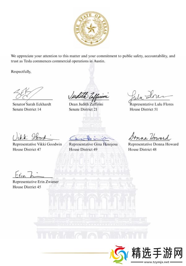 作为得州议会奥斯汀代表团成员,我们正式请求特斯拉将 Robotaxi 无人驾驶运营推迟至 2025 年 9 月 1 日新法生效后再启动。我们认为,这有利于公共安全,也有助于树立公众对特斯拉运营的信任。如果特斯拉仍决定按原计划在 2025 年 6 月 22 日上线,敬请提供一份详尽说明,说明届时如何确保合规。