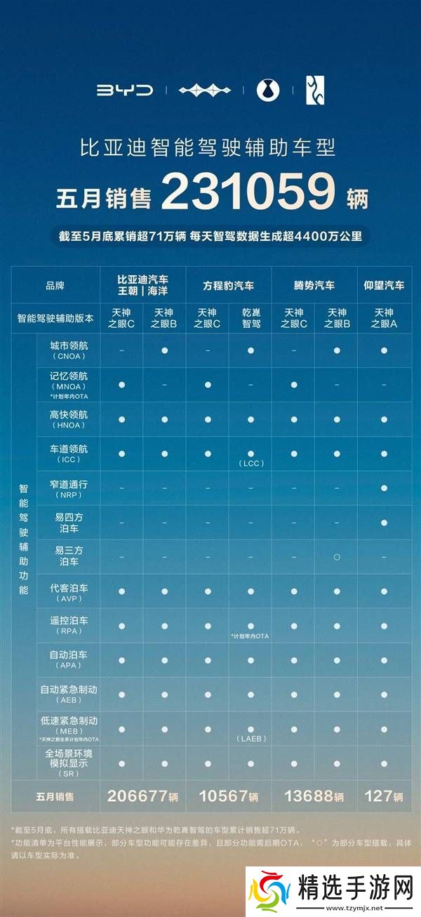 值得注意的是,截至5月底,比亚迪所有搭载了天神之眼智驾系统和华为乾崑智驾技术的车型,累计销量已经突破了71万辆大关,这一数据无疑彰显了比亚迪在智能驾驶领域的强大实力和市场认可度。