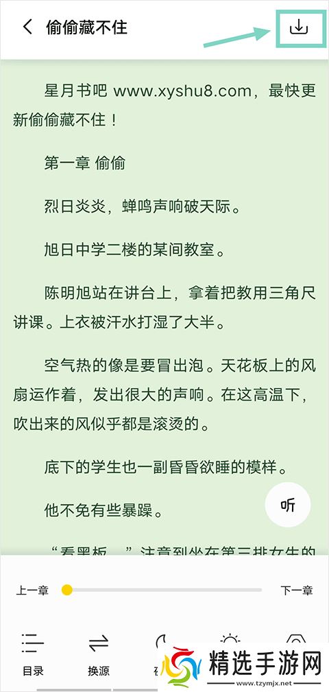 米禾阅读怎么缓存小说1、在小说阅读界面点击屏幕,右上角会显示一个“↓”图标。
