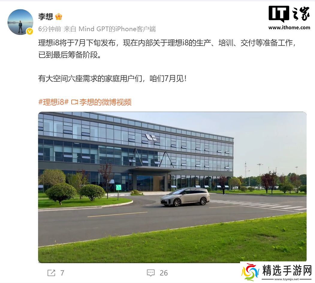 本站 6 月 19 日消息,理想汽车 CEO 李想刚刚在微博发文称,理想 i8 将于 7 月下旬发布,现在内部关于理想 i8 的生产、培训、交付等准备工作,已到最后筹备阶段。
