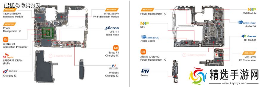 恩智浦半导体为小米15S Pro提供了NFC控制器以及UWB(超宽带)模块,增强了手机的近场通信和超宽带互联能力。音频方面,美国思睿逻辑(Cirrus Logic)的音频编解码器及音频功率放大器(PA)为手机带来了卓越的音质体验。意法半导体则负责提供传感器芯片组件,进一步提升了手机的智能化水平。